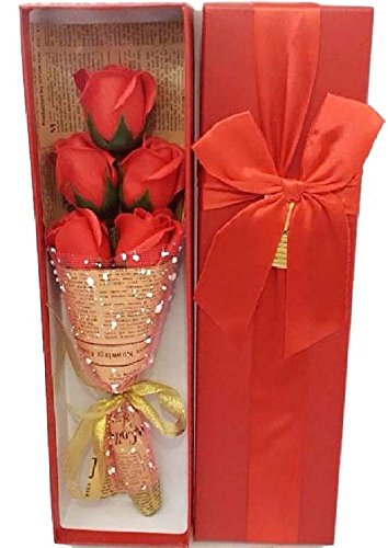 ギフト 感謝 を 花束 に ソープフラワー お祝い プリザーブドフラワー 風 メッセージカード の セット 母の日 父の日 誕生日 発表会 (赤 5本)