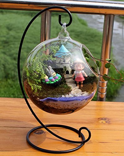 SACHI ハンギング テラリウム スタンド 付き アクアリウム 観葉植物 インテリア (12cm, 丸 タイプ)