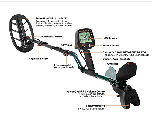 - 防水ダイヤル:浅い水に金属探知機を使用できます。調節可能なレバー:金属探知器の長さを調節出来ます。