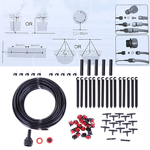 - 包装に含め:23メートル点滴灌漑管+15pcsプラスチックノズル(TEE)+15pcs固定軸+2pcsカプラ+5pcs後端+1pcネジコネクタ+1pcフィルター+10pcs管ホルダー+1pcフローコントローラ+10pcsイントラ水滴管+10pcs端水滴管。