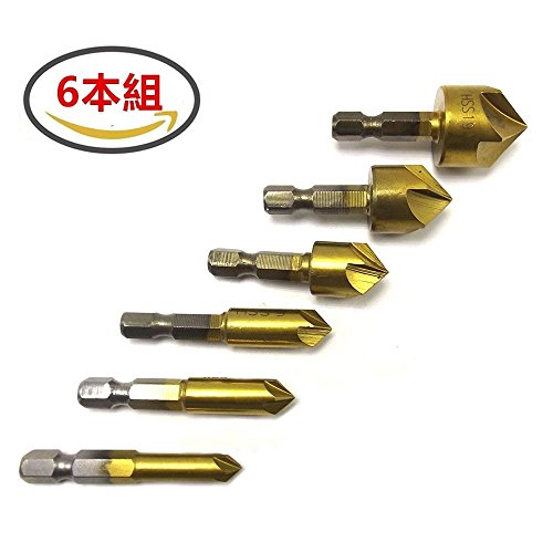SILIVN 5枚刃 面取りカッター(6本組)+ 電動ドリルのお供 + 連結軸ドリル(フレキシブルシャフト) 六角軸 高速度鋼 ドリル下穴あけに 工具セット