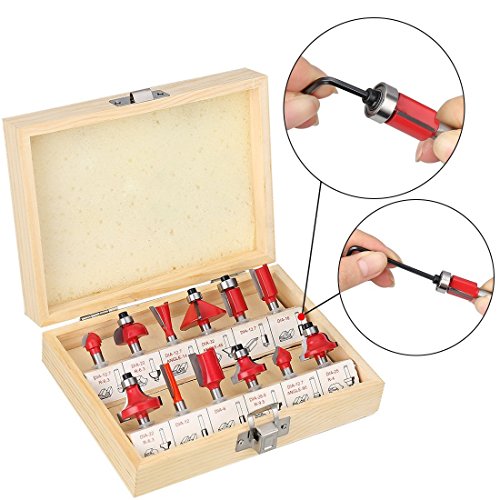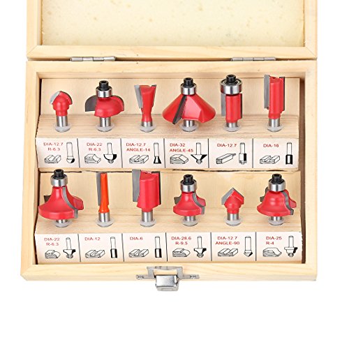 SILIVN 超硬刃ルータービット トリマービット 電動ルーター用 電動トリマー用 木工用 切削道具ツール 1/4シャンク 12種 木製収納ケース付き