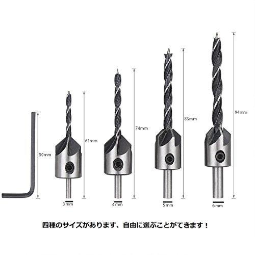 - 【サイズ】ドリル刃直径/全長/皿ネジ径 (mm):約3mm/約61mm/約15mm 約4mm/約74mm/約15mm 約5mm/約83mm/約5 約6mm/約94mm/約15mm。(手動測定では、少し誤差があることは避けられません)