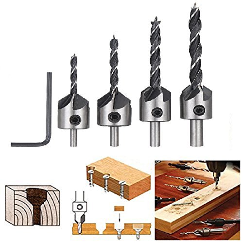 SILIVN 皿ドリルビット 木工用 穴あけ 面取りカッター 六角レンチ付き 皿錐 下穴 座ぐりドリル 4本セット …
