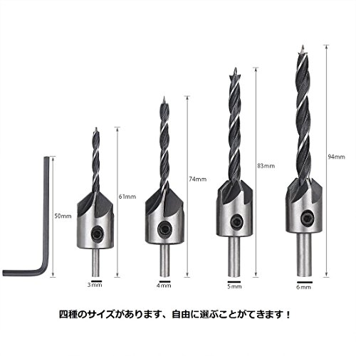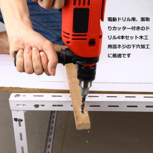 SILIVN 皿ドリルビット 木工用 穴あけ 面取りカッター 六角レンチ付き 皿錐 下穴 座ぐりドリル 4本セット