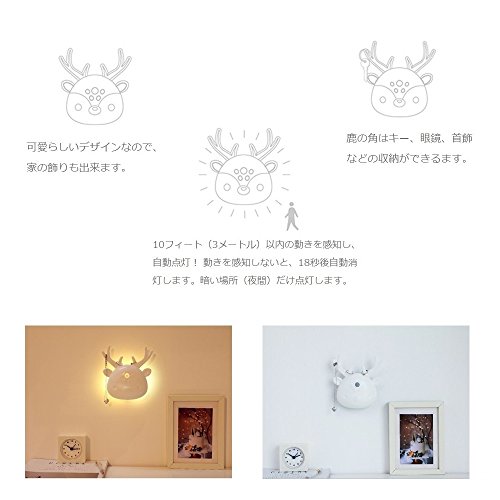 - 【おしゃれな設計】可愛い萌え鹿のデザインなので、ライトをつけてなくても置いておくだけでも癒されます。目に優しいLED光源が配置され、光が柔らかくて明るさがよい、不快感を取り除きます。最高にリラックスとロマンチックな雰囲気を作成できます。小鹿的角はキー、眼鏡、アクセサリーなどの収納が出来ます。