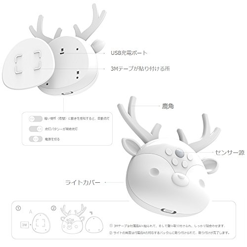 SILIVN 人感/明暗 センサーライト LED ナイトライト かわいい鹿ランプ クリスマス 飾り USB充電 省エネ 室内/階段/廊下/玄関/トイレ照明 壁掛け LEDライト 3Mテープ付け 電球色