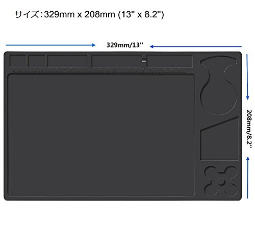 SILIVN シリコン 作業マット 絶縁 断熱パッド 500℃高温熱風に耐える 無毒無臭 溶接用 はんだ 電子製品 携帯 パーソコン分解修理用ツール ブラック(32.9x20.8cm)