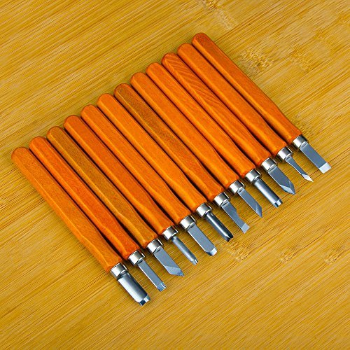 similk合金スチール木製彫刻ツール、Crafting Chisel withレザー指ガード、保護カバー&ストレージケース 12set flat tools CMKCP006AY