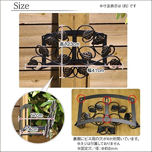 - 本体は、パウダーコーティング(粉体塗装)を行っているので、空気に触れにくく錆びにくい特徴があります。植物のつるのような曲線に、葉っぱのリーフモチーフがかわいいデザインで、設置すればお庭をセンスアップしてくれそうですね。