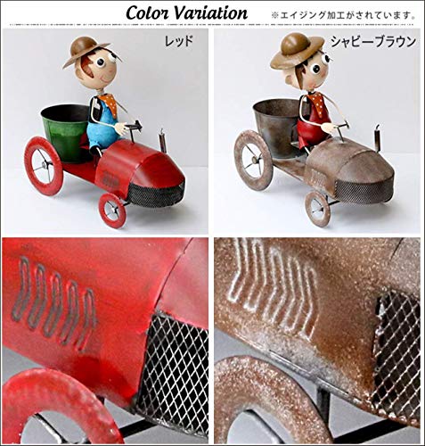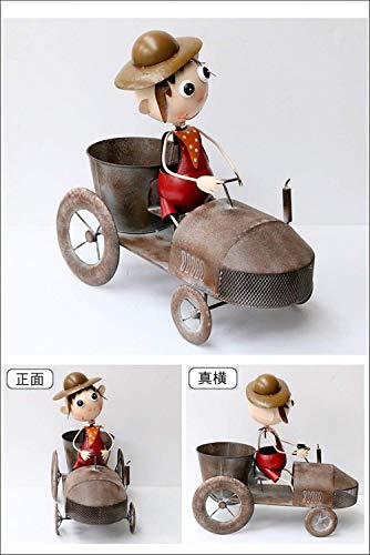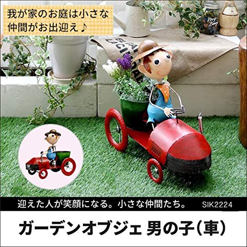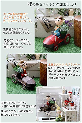 - お庭や玄関、アプローチ等を観葉ポットとしておしゃれに彩る♪男の子の人形が車に乗っている、かわいいオブジェ。ポップな色彩が魅力のオブジェは、可愛くて、どこかユーモラス。どの角度から見ても、癒される愛らしさです。お庭の奥でひっそりとツタを絡ませれば、森に忘れられたおもちゃのようで素敵です。