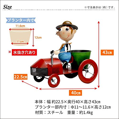 - 【本体サイズ】幅22.5×奥行40×高さ43cm プランター部内寸:直径11~11.6×高さ12cm 【重量】約1.4㎏ 【材質】スチール(ラッカー塗装)