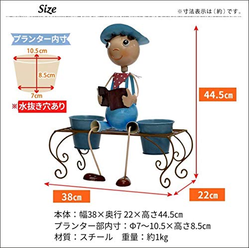- 【本体サイズ】幅38×奥行22×高さ44.5cm プランター部内寸:直径7~10.5×高さ8.5cm 【重量】約1㎏ 【材質】スチール(ラッカー塗装)
