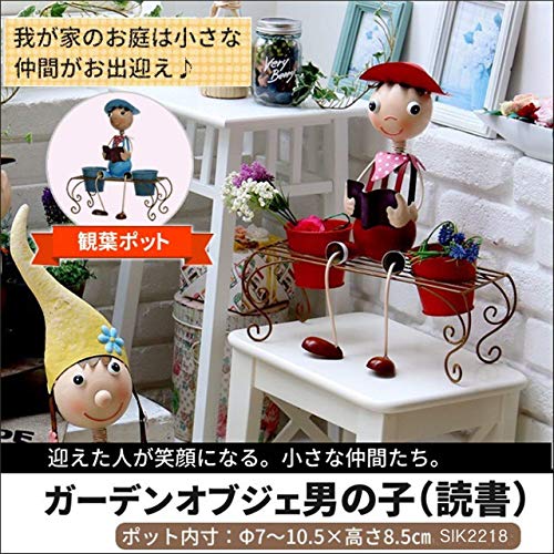 - お庭や玄関、アプローチ等を観葉ポットとしておしゃれに彩る♪男の子のドールが読書をしている、かわいいガーデンオブジェ。ポップな色彩が魅力のオブジェは、可愛くて、どこかユーモラス。どの角度から見ても、癒される愛らしさです。お庭の奥でひっそりとツタを絡ませれば、森に忘れられたおもちゃのようで素敵です。
