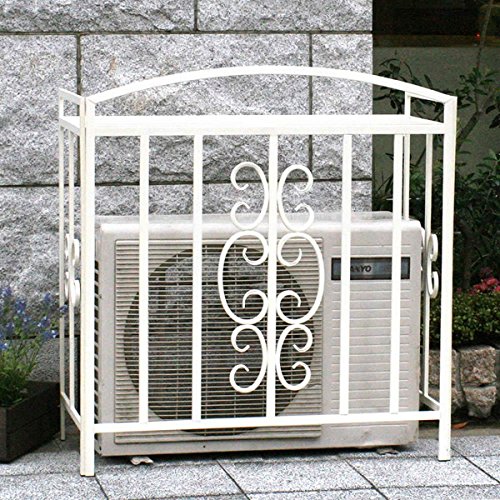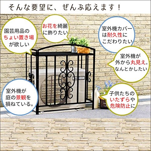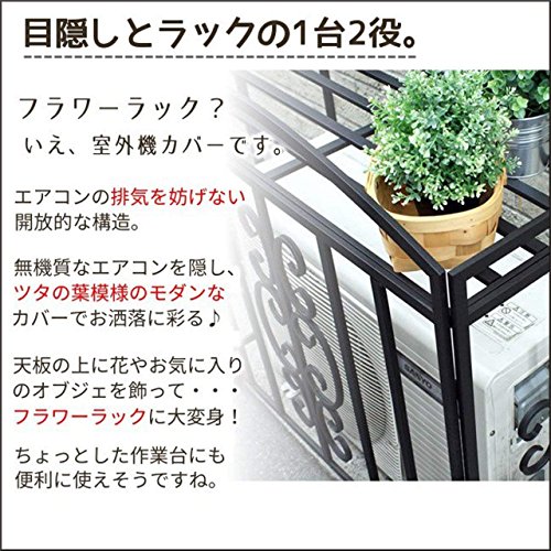 - アンティークなツタ模様がおしゃれなアイアン室外機カバー(エアコンカバー・クーラーカバー)。無機質な室外機を隠しつつ、飾るのがスチールのカバーの特長。エアコンの日よけにもなり節電効果も期待できそうです。天板の上にプランターやガーデニング用品を収納でき、フラワーラックのように使える利点も魅力です。