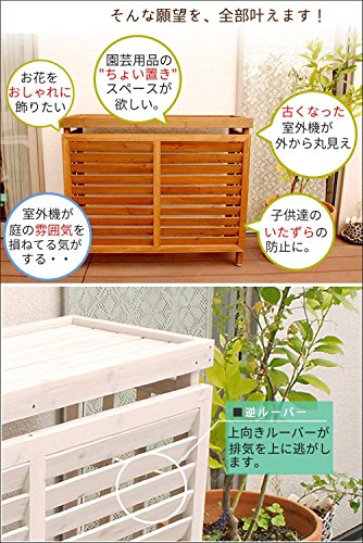 - 室外機の日よけ、節電対策に注目されている室外機カバー。逆ルーバー仕様なので排気を上へ逃がし、植物が枯れるのを防ぎます。天然木の風合いがおしゃれなカバーは、まるで北欧インテリアのようで、置くだけでパッと明るい雰囲気に。上部にプランターが置けるので、フラワーラックとして収納場所にも活用できます。