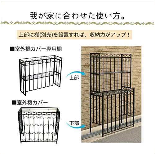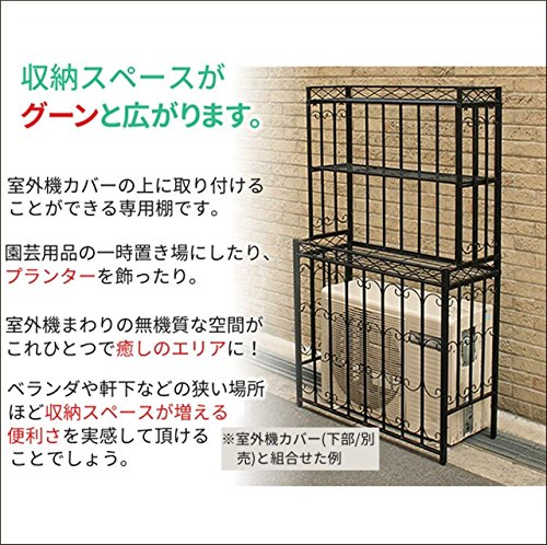 - 屋外のエアコン室外機の日よけや、節電対策に近年人気の室外機カバー。こちらのアイアン室外機カバーは、アンティークなデザインがおしゃれで、設置するだけで癒しの空間を演出します。上部に専用の収納棚の取り付けが可能で、カバー単品、カバーと棚のセット、専用棚単品のバリエーションからお選び頂けます。