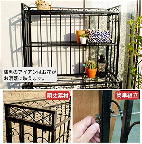 - 上部にプランターを飾ったり、ガーデニング用品の置き場に使ったりできて便利です。組み立ては、蝶ナットとボルトを止めるだけの簡易組立。スチール製ならではの重厚感と、頑丈さ、さらに排気を妨げない開放的な仕様も魅力のアイテムです。