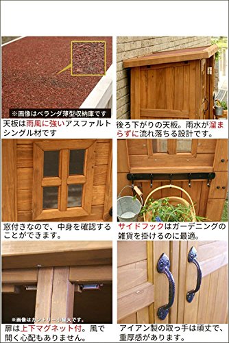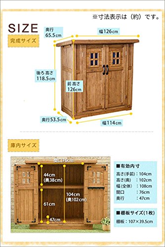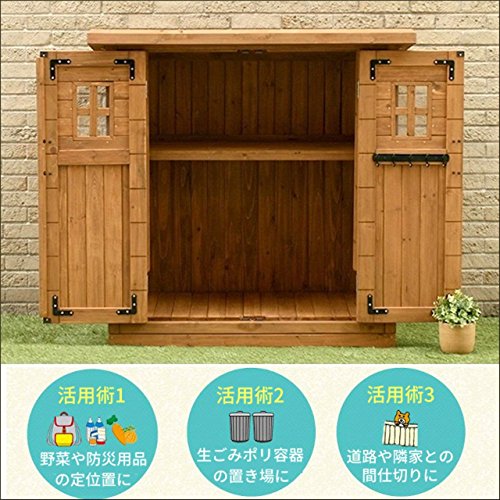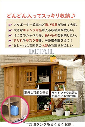 - 園芸用品やアウトドアグッズ、灯油タンクなど・・・たくさん収納できる!天然木製の屋外用物置き。スチール製より緑に馴染んでおしゃれ♪置くだけで、雰囲気のあるお洒落なお庭に早変わりします。置き場所に困る季節物、子供の遊び道具なども全部まとめてスッキリ収まります。