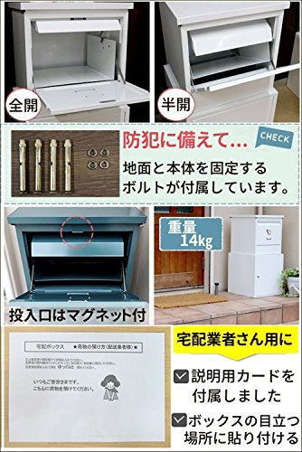 - 不在時にあなたに代わって荷物受け取り!北欧風でアンティークなデザインがおしゃれな宅配BOX。一戸建てやマンション等の屋外に設置でき、防犯用のアンカーボルトで地面と本体を固定できます。組み立てはとっても簡単!コンパクトなサイズなので気軽に玄関に置いてみて下さい。