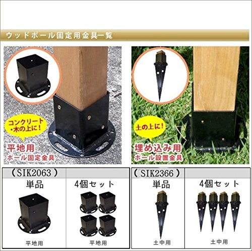 SINAPP ウッドポール固定金具 フェンス 平地用 コンクリート SIK20644個セット