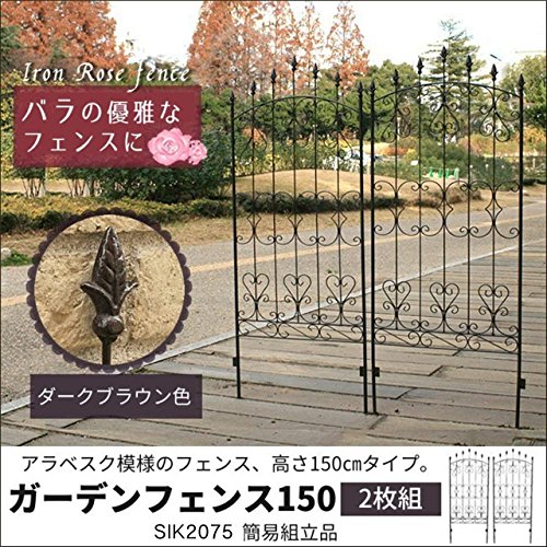 - 優雅な曲線を描いたアラベスク模様が、アンティーク調でおしゃれなアイアンフェンス。高さ150cm・高さ220cmの2タイプ展開で、2枚組または4枚組からお選び頂けます。外からの目隠しやお庭の間仕切りに、またはバラや緑のツタを絡ませて、トレリスとしての使用も。上品なイングリッシュガーデン作りにお役立て頂けるアイテムです。