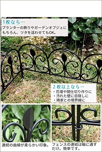 - 小さいけど実力派!アンティークなフォルムに小ぶりでかわいいサイズのフェンス。高さが25.5cmと低く、狭いお庭でも圧迫感なく間仕切りや花壇作り、境界線などを作れます。連結可能なので、数枚つなげれば見栄えのいい空間を演出できます。植木鉢の背に立てて、プランターにおしゃれなアクセントを加えてもいいですね。