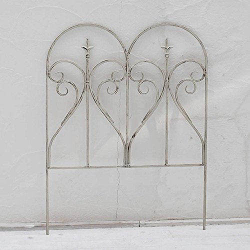 - 角パイプによる美しい曲線デザインに、塗装はマット仕上げ。ホワイトは真っ白ではなく、アンティーク加工を施したシャビ―な印象に。アイリスの紋章風モチーフが華やかさを添え、がらりと庭の雰囲気を変えてくれます。
