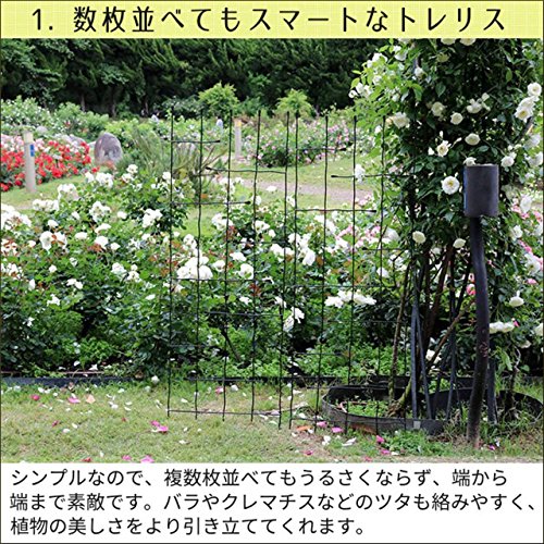 - 土中に足をさすだけで手軽にトレリスやフェンス、バラや植物のつるを這わせたアーチのような柵が作れる♪1枚ならトレリスとしての使用に、2枚以上ならお庭の間仕切りや防犯柵に、または立て掛けて壁をおしゃれに演出したり、隣家との境界線に使ったり…と色々な用途にお使い頂けます。