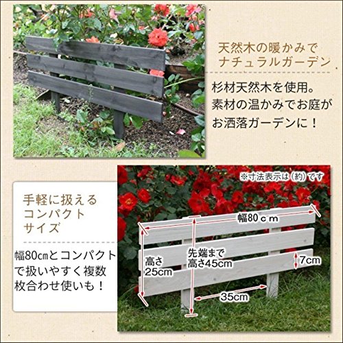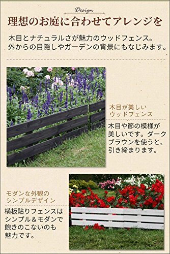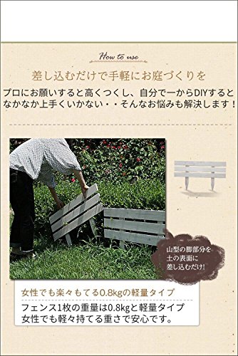 - 簡単木製フェンスで花壇を手軽にアレンジ!1枚幅80cmのコンパクトサイズで、軽量で扱いやすいロータイプフェンス。地面にさすだけで、花壇を手軽に思い通りにアレンジできます。横板貼りのシンプルなデザインで、間仕切りや目隠しなどお洒落なお庭作りに大活躍!お庭になじむ2色展開です。