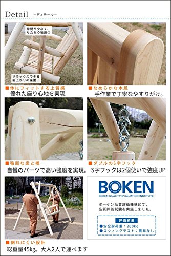 - 丸太の魅力を存分に味わえるカナディアン・デザイン。まるで憧れのリゾートや自然公園のようなお庭に♪耐荷重200kgで、大人も座れる安定感のある形状と強度が自慢のブランコです。リゾート施設や自然公園、店舗などでもご好評をいただいています。