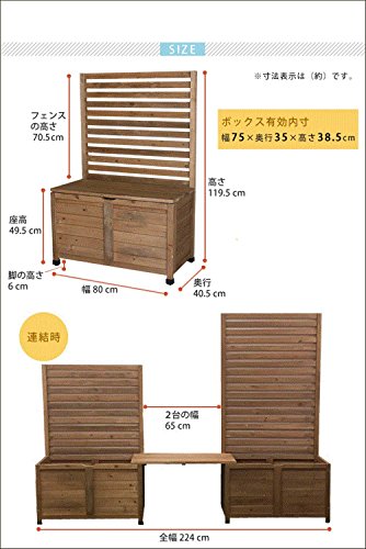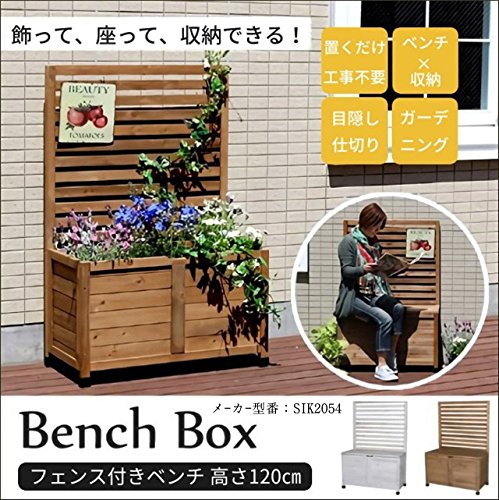 SINAPP プランター付きフェンス 木製 目隠しガーデニング ベンチ SIK2054 ライトブラウン