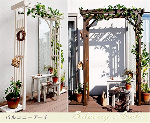 - イングリッシュガーデンのような、おしゃれなエクステリアを演出する天然木製バルコニーアーチ。ベランダやバルコニーに設置できるコンパクトサイズです。足元には固定を兼ねた鉢置きがついています。ハンギングやつるを這わせたり、プランターを吊るしたりと、あなた好みの癒しのガーデニングスペースが完成します。