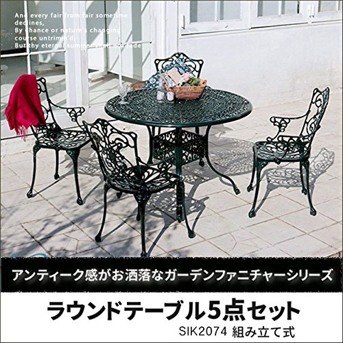 SINAPP ガーデンテーブル 5点セット イングリッシュガーデン オーバル ラウンド アルミ SIK2074 ラウンドテーブルセット
