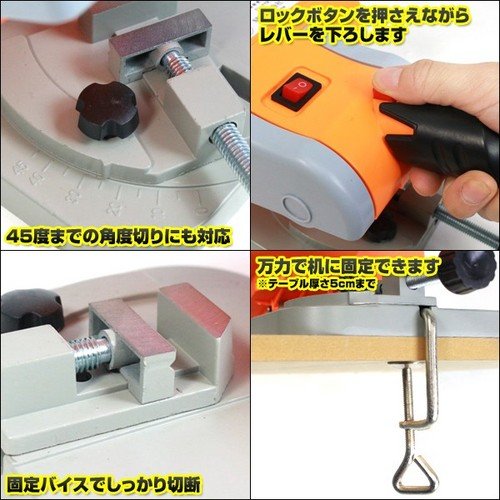 - 持ち運びに便利な小型、軽量タイプの切断機です。 クイックバイス付きなので材料の固定が簡単に行えます。