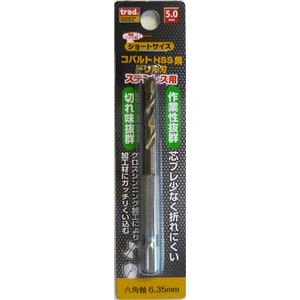 (業務用10個セット) TRAD 六角軸ショートコバルトドリル/先端工具 【ステンレス用】 穴径:5.0mm TCD-5.0 〔DIY/大工道具〕