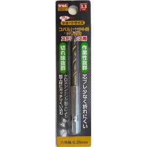 (業務用75個セット) TRAD 六角軸ショートコバルトドリル/先端工具 【ステンレス用】 穴径:3.3mm TCD-3.3 〔DIY/大工道具〕