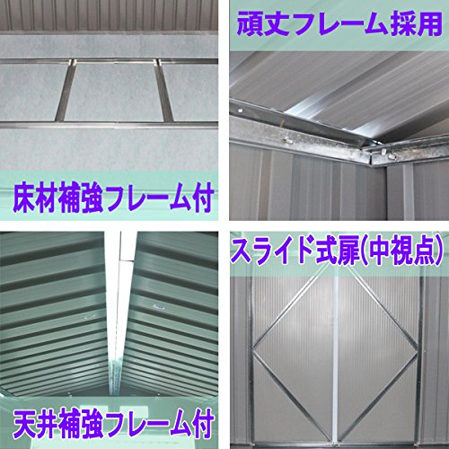 倉庫として自転車置き場として 頑丈設計なメタルシェッドです。 自転車置き場に、バイクガレージにもなる大型収納庫、 タイヤや釣り竿など趣味のアイテム、重量物、長尺物の保管に最適です。 スライド式の扉で開閉ラクラク♪ 出入り口にはミニスロープも付いています。 またスチール補強フレーム付きなので耐久性がアップしました。 ★組み立て 大人2名以上での組み立てを推奨いたします。 ■設置場所に、搬入可能かどうか、サイズなどは必ずご確認ください。 ◆原則としてキャンセルは、認められません。よくお考えの上、ご購入ください。 ※実際の商品と上記の写真の色は、照明の関係上若干異なる場合があります。ご理解のうえご購入ください。 ★商品を組立て、完成されるまで、梱包材は保管をお願いします。 万が一、返品・商品交換をご希望される場合には、(商品到着後7日以内)お客様にて、 商品到着時の状態に梱包して頂き・発送までのご準備をお願い致します。 ※梱包されていない状態での返品はお受けできません。 ■配送後のキャンセルは、往復の送料をいただきます。よくご検討されたうえでご入札してください。