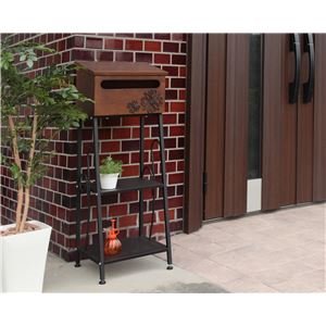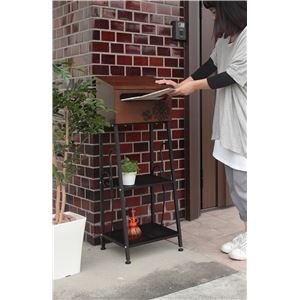 郵便受け(メールボックス/スタンドポスト) スウェニー 高さ98cm 鍵穴/アルファベットシール/棚付き ブラウン