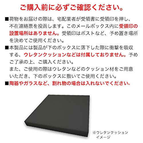 荷物の受け取りが心配でなかなかネット注文ができない方にオススメ! 不在時も荷物が受け取れる宅配ボックスです! 上扉を開けて荷物を入れて扉を閉めると、自然と落下する仕組み。 下扉は付属のカギで開閉できます。 帰宅時間を気にしたり、再配達の連絡をする必要も無くなる! 入居者も宅配業者も嬉しいアイテムです! ※本製品に荷物の落下の衝撃を吸収するウレタンクッション等は付いておりません。予めご了承の上ご購入ください。 ※取り付け作業時は怪我をする恐れがありますので、手袋をはめ、大人2人以上で作業してください。 ※製品は安全な場所に設置してください。特に以下の場所には設置しないでください。 ・段差のあるところ ・水が溜まるところ ・強風の吹く可能性があるところ ・雨水が屋根から流れ落ちるところ ※雨風や諸条件によって雨水などが侵入することがありますのでご注意ください。 ※生鮮食品、貴重品、現金、危険物、割れ物などの保管はしないでください。 ※荷物の授受および預けられた荷物などに関する事故に対しての保障は致しかねます。 ※製品に対する配達員の操作ミス、あるいはいたずらなどによる故障の為、荷物の盗難、紛失や損傷が発生しても 保障は致しかねますので予めご了承ください。