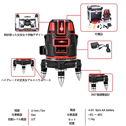 - 自動調整機能:本体の傾きを3°以内に調整することができます。360度の三脚シャーシを回転させて、線の位置は任意で調整することができます。誤差を減らし、仕事効率を向上させます