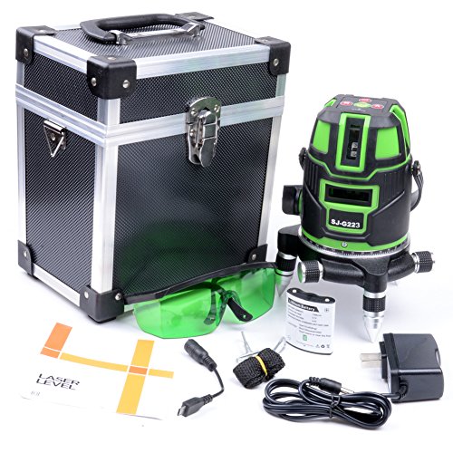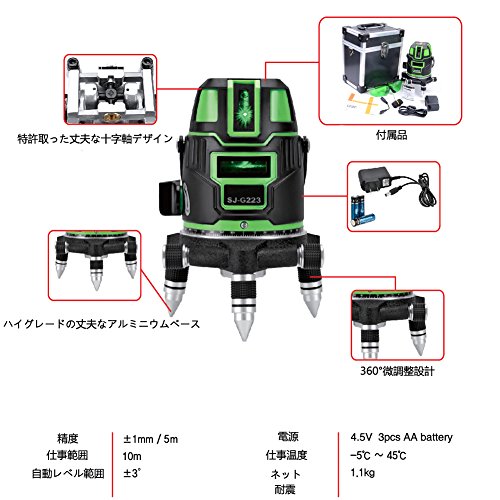 3ライン グリーンレーザー墨出し器SJ-G223 3線4点 回転レーザー線大矩照射モデル【標準セット】