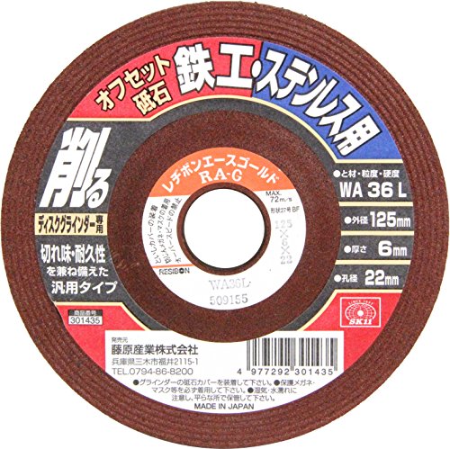 SK11 ディスクグラインダー用 オフセット砥石 鉄工・ステンレス用 125X6X22mm