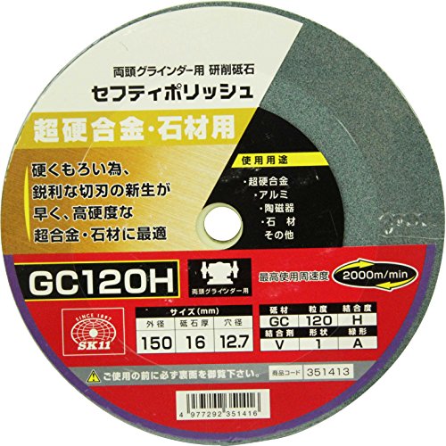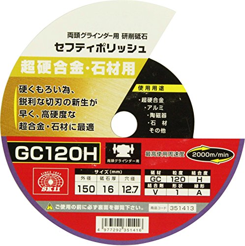 SK11 両頭グラインダー用 研削砥石 セフティポリッシュ B 超硬合金・石材用 150X16mm GC120H