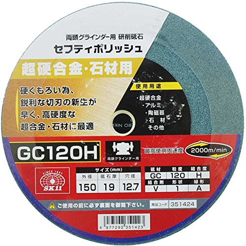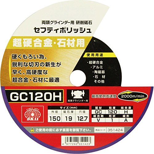SK11 両頭グラインダー用 研削砥石 セフティポリッシュ B 超硬合金・石材用 150X19mm GC120H