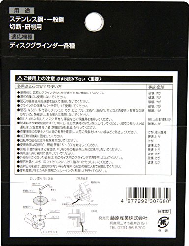 ●【用途】ステンレス・金属類の切断・研削作業。●【機能・特徴】切断してバリ取りもこの1枚で可能です。【注意事項】保護メガネ・マスクなど安全保護具を着用して正しく安全にご使用下さい。オーバースピードや側面使用はしないでください。砥石に、カケ、歪み、ヒビ、ワレ、水ぬれ、油ぬれなどの使用上有害な欠陥がないことを確認してください。