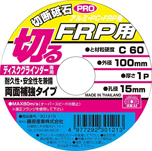 ●【用途】FRP・塩ビの切断に。使用機種/ディスクグラインダー100mm。【特徴・機能】目詰まりしにくい、アミ状で効率よく切断可能。●ディスクグラインダー専用。【注意事項】保護メガネ・マスクなど安全保護具を着用して正しく安全にご使用下さい。 オーバースピードや側面使用はしないでください。砥石に、カケ、歪み、ヒビ、ワレ、水ぬれ、油ぬれなどの使用上有害な欠陥がないことを確認してください。