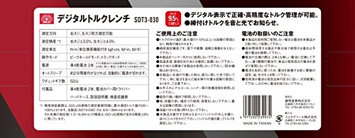 ●【用途】ボルト・ナットの締付けトルク値の測定作業。【機能・特徴】設定トルク到達時、ブザー音とLEDの光でお知らせします。右ネジ、左ネジ両方向の測定が可能です。 設定トルク値と測定トルク値を他の単位換算出来ます。 約2分間操作しなければ自動的に電源が切れるオートスリープ機能付きです。【注意事項】●トルクのかけ過ぎ(最大値110%以上)は故障の原因となり、精度が損なわれます。●精密測定器具です。落下や衝撃、過剰な振動を与えないで下さい。●付属電池はテスト用のため長時間使用できません。