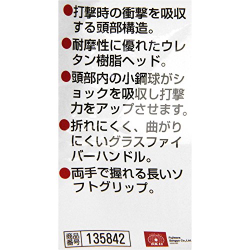 ●【用途】精密機器や塗装済みパーツ等の打撃作業。【特徴・機能】頭部内の小鋼球がショックを吸収し打撃力をアップさせます。ウレタン樹脂製で安全で耐久性に優れ、傷を付けにくくなっています。折れにくく、曲がりにくいグラスファイバーハンドルです。両手で握れる長いソフトグリップです。女性にも扱い安い小型サイズです。【注意事項】クギ打ちには使用しないで下さい。周囲の人の安全を確認して作業して下さい。安全メガネ、ヘルメットは必ず着用して下さい。まっすぐ正確に打って下さい。頭部・柄部・グリップ部にガタつきがないか、ヌケないか、グリップがまわらないかを確認して下さい。抜け、折れの恐れのある場合、使用しないで下さい。