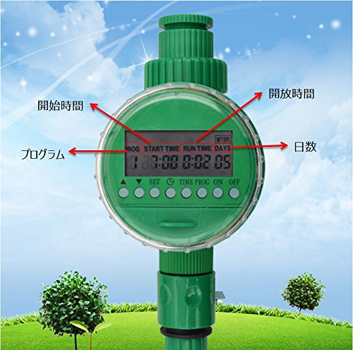 - 水やり時間:1分~9時間59分 水の接続:21mmの蛇口(26.5mmネジ付き) 適用範囲:家庭庭園、バルコニー、屋上庭園、小面積緑化、灌漑など